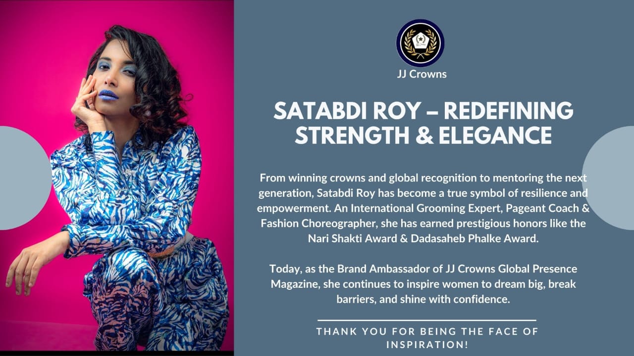 As the Cover Face of JJ Crowns Global Presence Magazine, Satabdi Roy represents not just fashion and fame, but the deeper essence of grace, grit, and global excellence. Her story reminds us that when a woman dares to rise, she lifts countless others along the way.